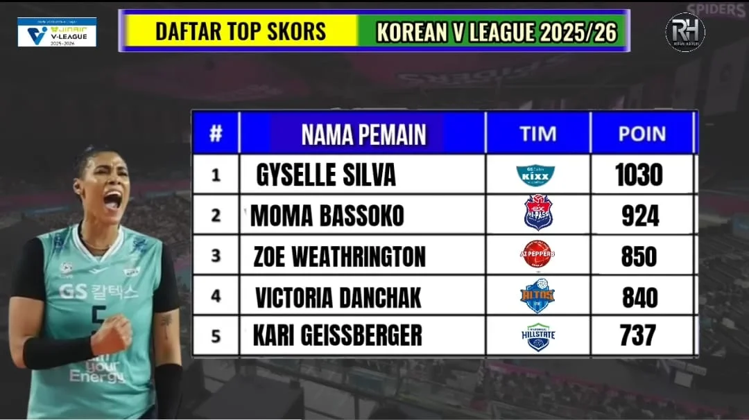 RRI.CO.ID, Batam – Berikut daftar top skors Woman Korean V League tahun 2026.