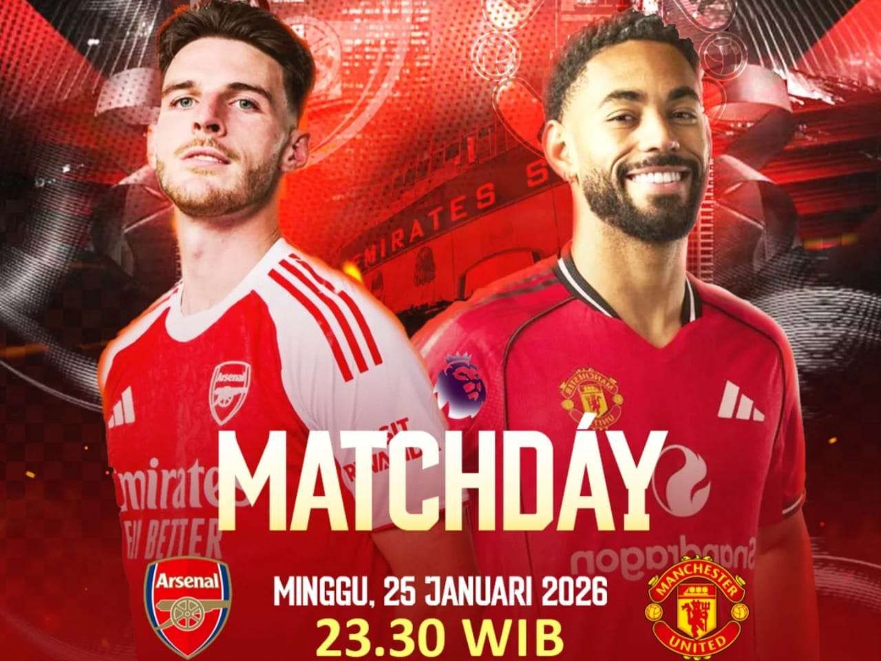 RRI.CO.ID,Bengkalis - Manchester United (MU) menghadapi ujian berat saat bertandang ke markas Arsenal dalam lanjutan kompetisi Liga Inggris. Duel panas dua raksasa Premier League ini akan digelar pada Minggu,25 Januari 2026, pukul 23.30 WIB, di Stadion Emirates, London.
