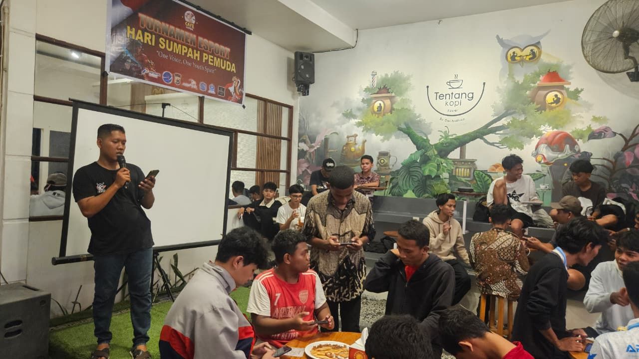 KBRN, Jayapura: Sebanyak 16 tim mengikuti turnamen E-sport Sumpah Pemuda, berlangsung di Cafe Tentang Kopi Sentani, Jumat (17/10/2025). Event ini digelar oleh komunitas Cafe Gaming Jayapura. Kapolres Jayapura diwakili oleh Kasat Reskrim Polres Jayapura, AKP Alamsyah Ali, saat membuka turnamen E-sport, mengingatkan para peserta turnamen untuk menjunjung tinggi sportivitas, dengan semangat Sumpah Pemuda.