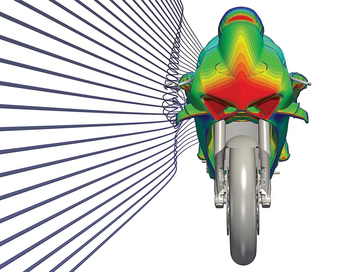Prinsip aerodinamika yang kini mulai diterapkan menyerupai konsep vortex lift seperti pada pesawat tempur F-16. Dalam sistem ini, pusaran udara bertekanan rendah diciptakan di atas permukaan sehingga meningkatkan gaya tekan. Pada kendaraan roda empat seperti Formula 1, hingga 60 persen tenaga mesin digunakan untuk menghasilkan downforce. Namun pada MotoGP, tujuan utamanya jauh lebih terbatas, yakni menjaga stabilitas dan memungkinkan akselerasi penuh, sehingga konsumsi tenaga untuk aerodinamika jauh lebih kecil. Hal inilah yang membuat top speed MotoGP bisa melampaui mobil F1.