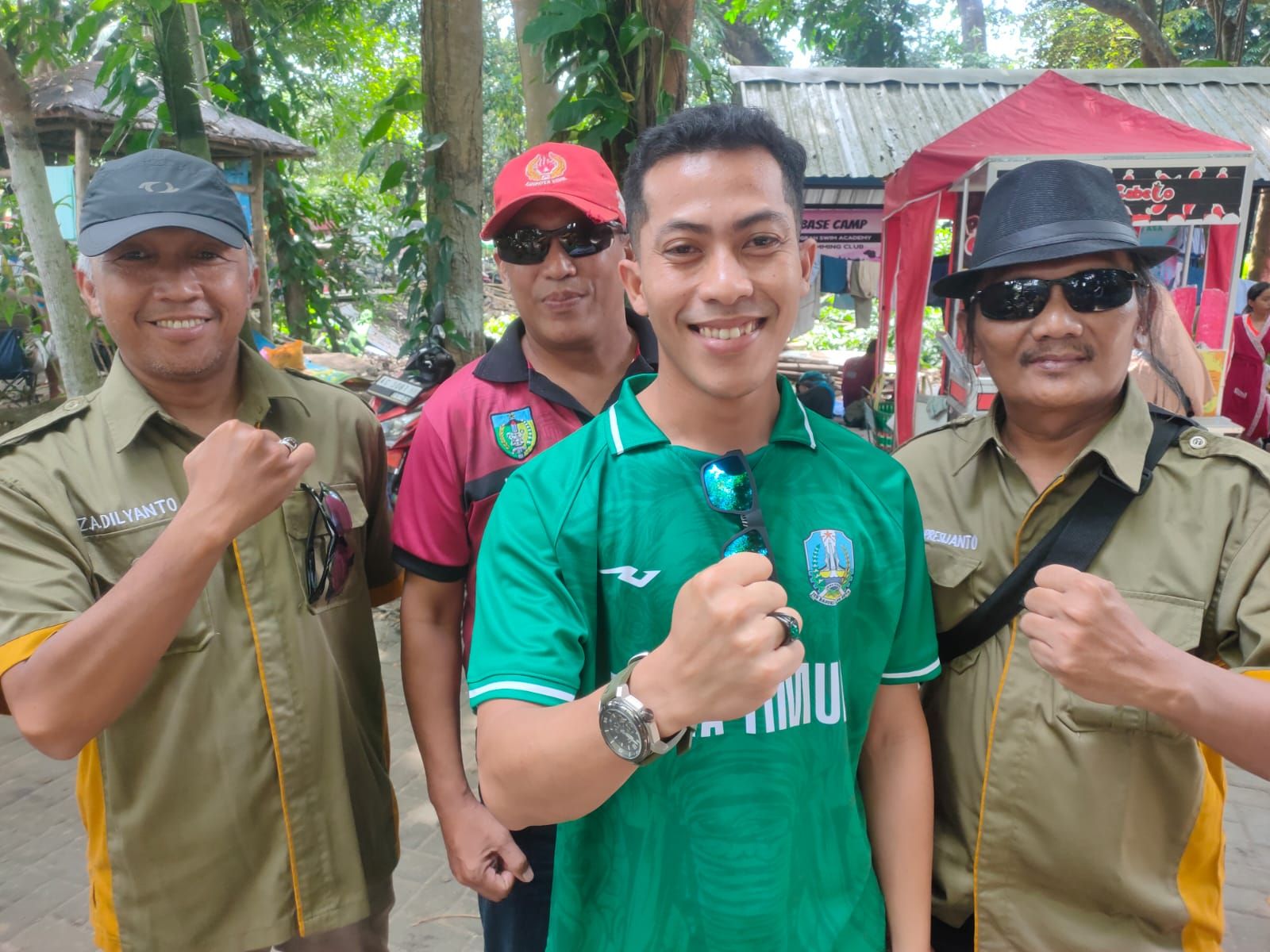 Ketua KONI Kabupaten Kediri, Hakim Rahmadsyah Parnata (tengah) didampingi Ketua Panitia Zainul Arifin Dilyanto (paling kiri) usai wawancara (Foto: RRI/Hery)