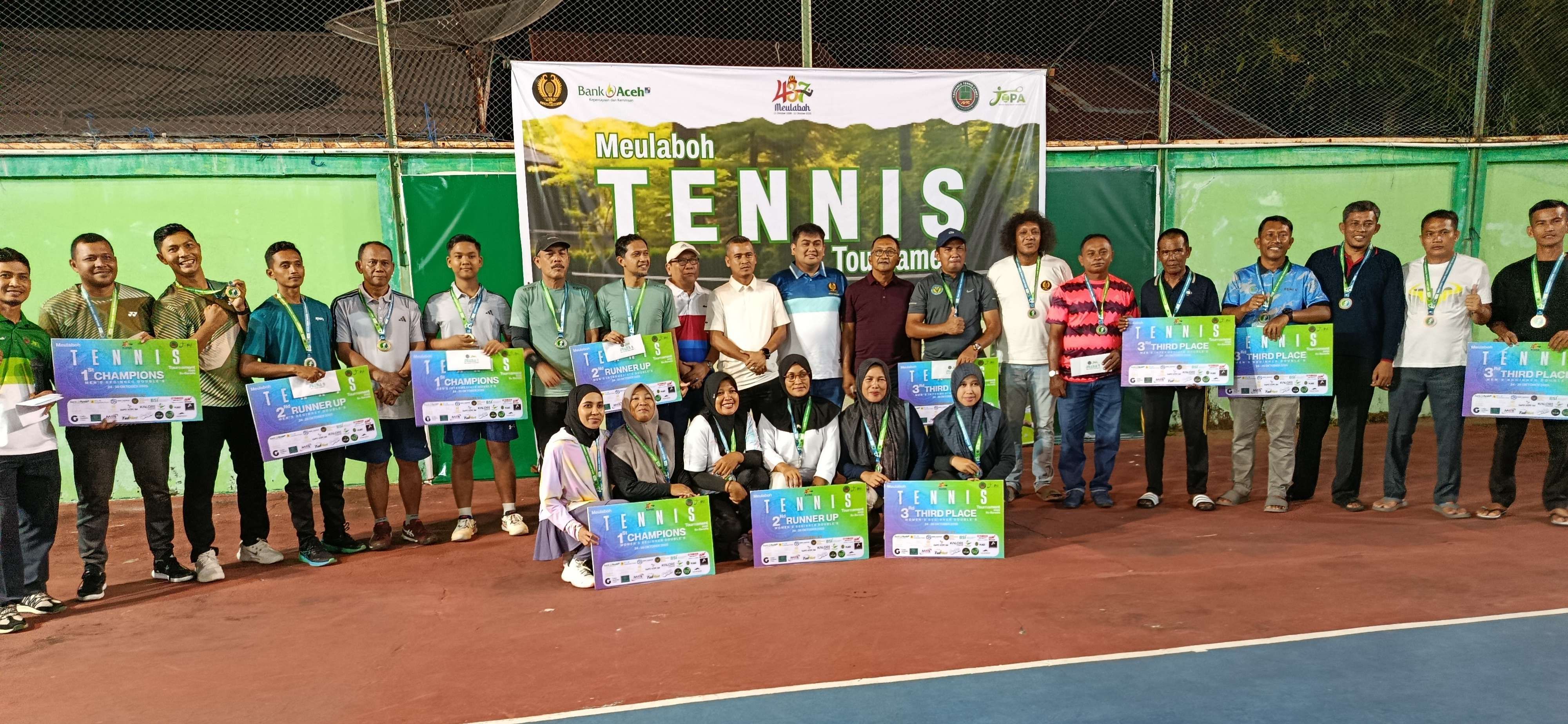 KBRN Meulaboh : Pimpinan PT Bank Aceh Cabang Meulaboh, Alwin Patra, secara resmi menutup rangkaian kegiatan Meulaboh Tennis Tournament 2025 se-Barat Selatan Aceh (Barsela) yang digelar di sejumlah lapangan tenis di Kota Meulaboh, Selasa (28/10/2025).