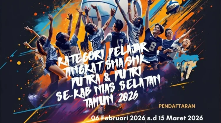 RRI.CO.ID, Nias Selatan - Persatuan Bola Voli Seluruh Indonesia (PBVSI) Kabupaten Nias Selatan akan menggelar turnamen voli antar pelajar SMA/SMK kategori Putra dan Putri se Kabupaten Nias Selatan. Turnamen ini rencananya digelar mulai 20 Maret 2026 di Lapangan Bunda, Teluk Dalam, Nias Selatan.