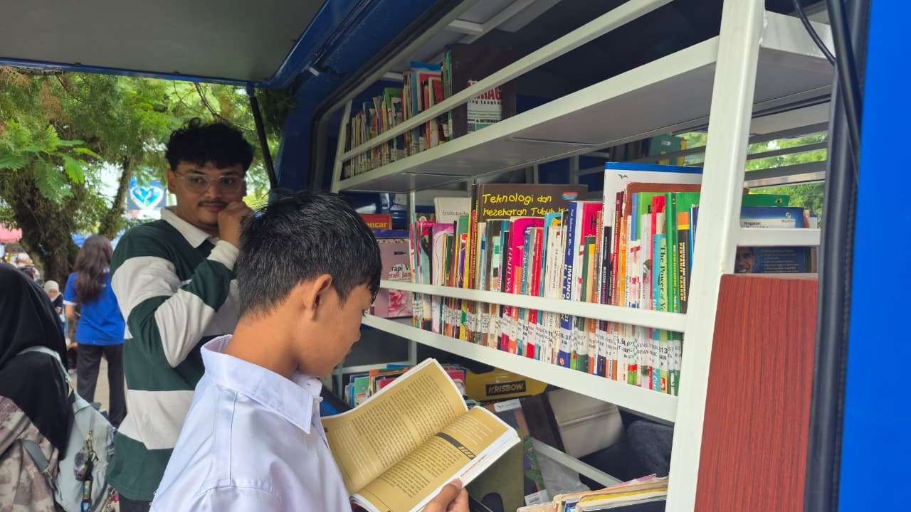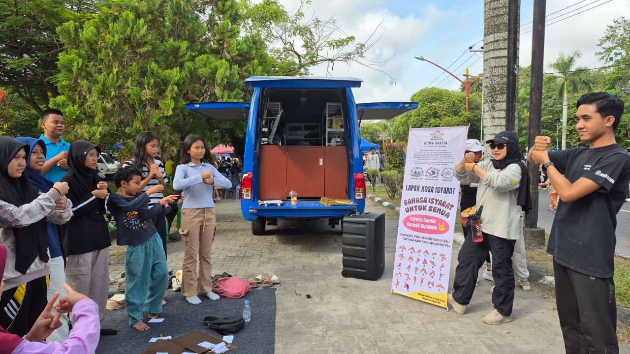 RRI.CO.ID, Palangka Raya - Sejumlah komunitas literasi berkumpul di area Hari Bebas Kendaraan Bermotor (Car Free Day) di Jalan Yos Sudardo, Kota Palangka Raya, Minggu, 25 Januari 2026. Berbagai kegiatan digelar mulai dari baca buku gratis, pengenalan bahasa isyarat, hingga sosialisasi pemilahan sampah. (Foto: Risa Kosasih/ RRI Palangka Raya)