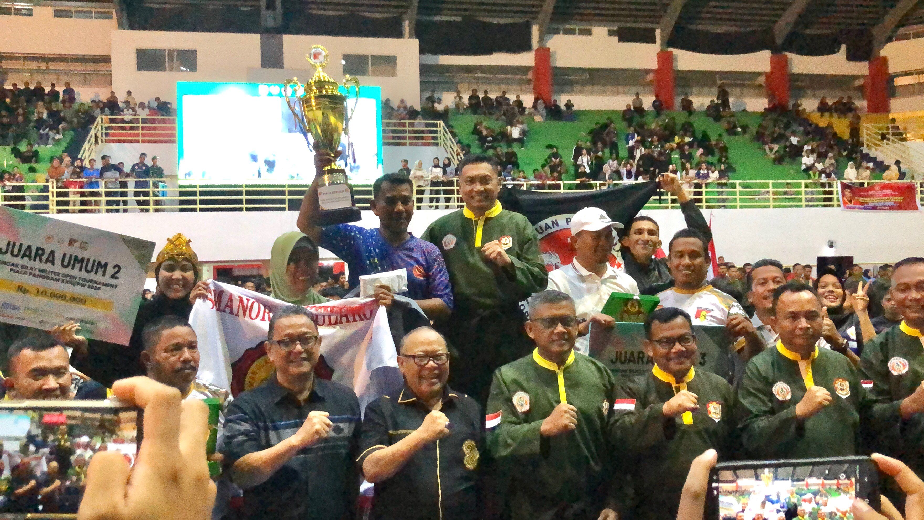 RRI.CO.ID, Palu - Kejuaraan Open tournament Pencak Silat Militer piala Pangdam XXIII/Palaka Wira telah resmi berakhir. Turnamen yang berlangsung di Gelora Bumi Kaktus (GBK) Kota Palu itu secara resmi ditutup oleh Pangdam XXIII/Palaka Wira, Mayjen TNI Jonathan Binsar Parluhutan Sianipar pada Sabtu, 7 Februari 2026 malam.