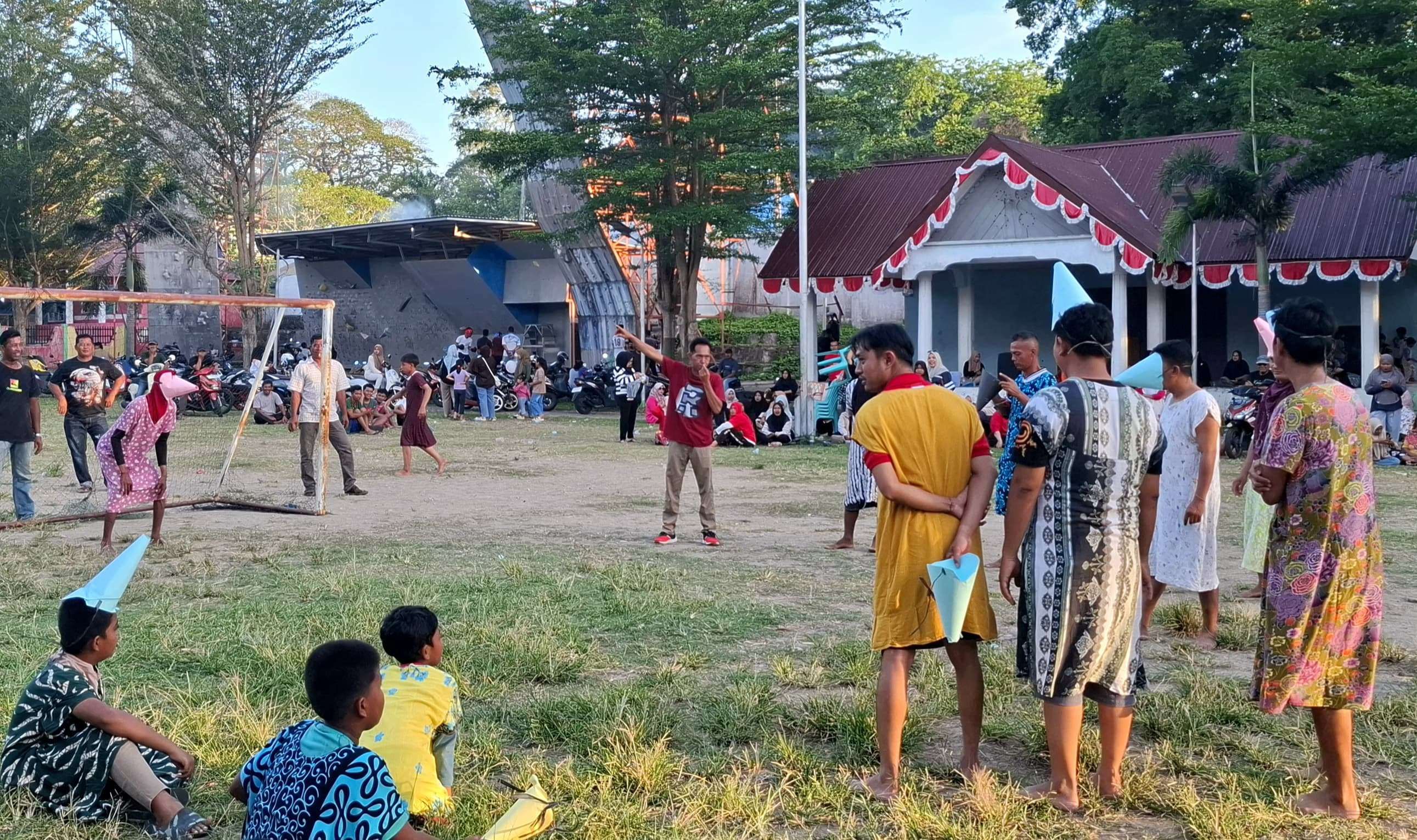 KBRN, Sabang: Suasana Lapangan Playground, Gampong Kuta Ateuh, Sabang, pecah oleh gelak tawa. Warga Jurong Sutejo menggelar lomba sepak bola daster yang membuat penonton terhibur luar biasa. Para pemain tampil beda, berlari di lapangan dengan daster panjang dan teropong kerucut buatan, membuat setiap gerakan terasa kian jenaka.
