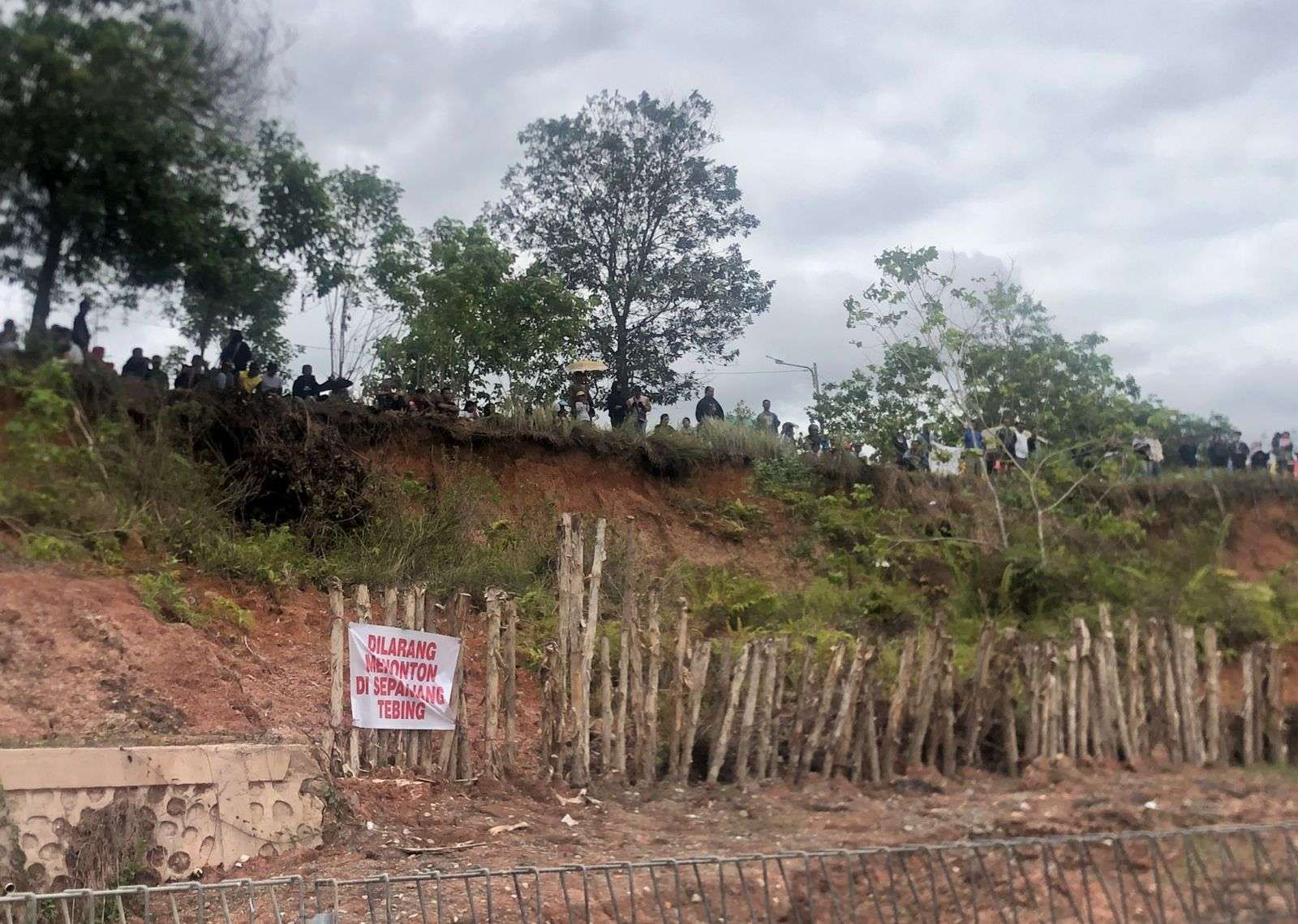 "Kami sudah buat pagar dimana-mana (sekeliling), namun ya kita tidak tau nasib orang seperti apa. Cuma imbauan kami di area tebing itu tidak ada yang boleh menonton disana, karena memang dibawahnya sudah longsor. Kami khawatirkan bisa terjadi abrasi lagi untuk tanahnya," katanya menjelaskan imbauan.