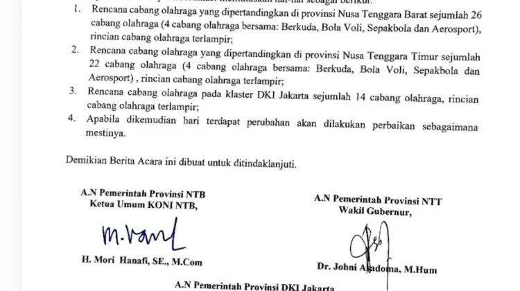 RRI.CO.ID - SORONG – Pelaksanaan Pekan Olahraga Nasional (PON) XXII tahun 2028 dipastikan akan tampil beda. Jika sebelumnya hanya melibatkan satu atau dua provinsi, pesta olahraga terbesar di Indonesia edisi ke-22 tersebut rencananya akan dilangsungkan di tiga wilayah sekaligus: Nusa Tenggara Timur (NTT), Nusa Tenggara Barat (NTB), dan DKI Jakarta.