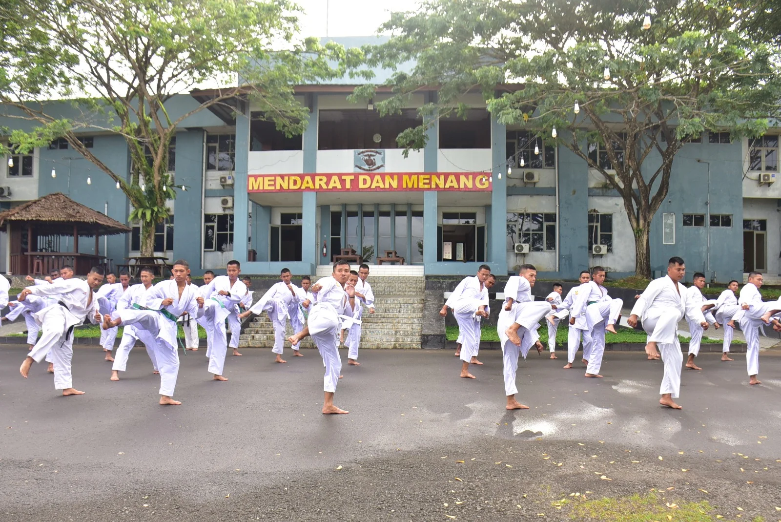 RRI.CO.ID,Sorong- Memasuki hari ke-16 bulan suci Ramadhan 1447 H/2026 M, prajurit Denmako Pasmar 3 tetap menunjukkan semangat dan ketangguhan dengan melaksanakan latihan beladiri karate di Lobby barat Mako Pasmar 3, Kesatrian Marinir Km 16 Kota Sorong, Papua Barat Daya, Jumat 6 Maret /2026.