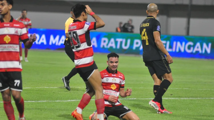 RRI.CO.ID, Pamekasan - Kondisi Madura United yang sedang terpuruk dengan rentetan hasil kurang memuaskan dalam 9 laga terakhirnya, membuat posisinya terancam di papan klasemen. Torehan 20 poinnya saat ini sudah bisa disamai oleh Persijap Jepara yang di laga pekan 24 bermain imbang dengan Persis Solo.