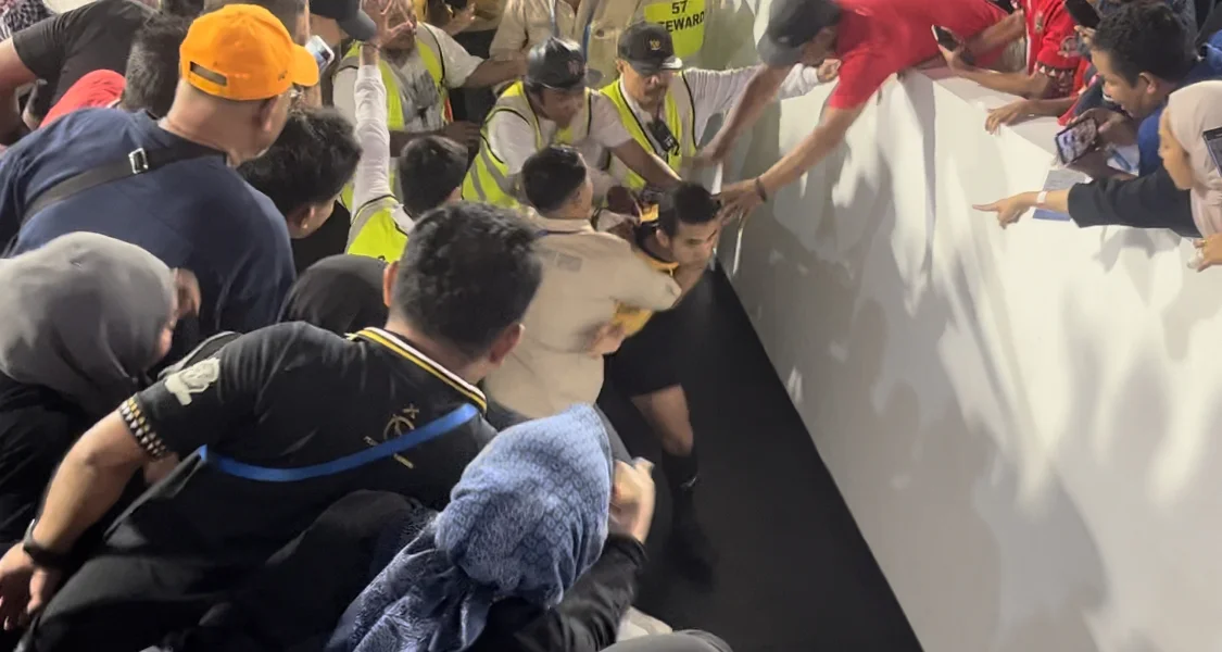 Ketegangan tidak hanya terjadi di area lapangan. Ruang transit yang seharusnya steril dari akses publik juga diterobos sejumlah orang yang melontarkan ancaman kepada perangkat pertandingan.